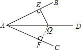 分析:过点Q作QF⊥AC于F,根据角平分线上的点到角的两边的距离相等可得QF=QE,然后代入数据进行计算即可得解.