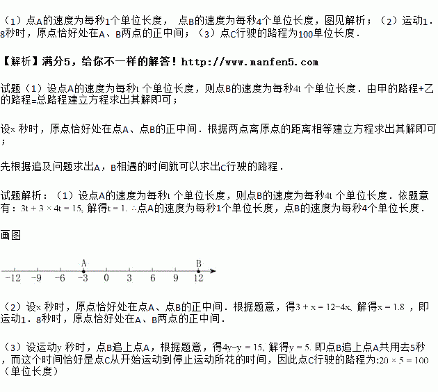(1)求出点A、点B运动的速度,并在数轴上标出A、B两点从原点出发运动3秒时的位置;