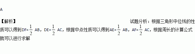 如图在△ABC中,E,D,F分别是AB,BC,CA的中点,AB=6,AC=4,则四边形AEDF的周长是( )