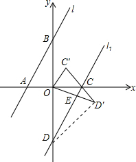 (2)连接OD′,由平移的性质得到l∥l1,利用两直线平行得到一对内错角相等,在直角三角形AOB中,利用锐角三角函数定义及特殊角的三角函数值求出∠ABO的度数,即为∠ODE的度数,由旋转的性质得到∠DOE=60°,OD=OD′,进而得出∠OED为直角,即l1垂直OD′,三角形ODD′为等边三角形,利用三线合一得到E为OD′中点,得证.