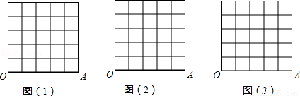 在下面的三个图中,以OA为边,在正方形网格内作∠AOB=α,B点为格点(每个小正方形的顶点)使sinα的值分别为: