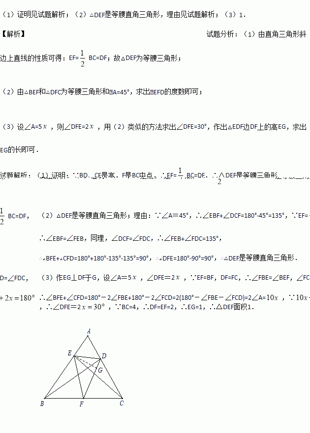 如图,已知△ABC中,BD、CE是高, F是BC中点,连接DE、EF和DF,