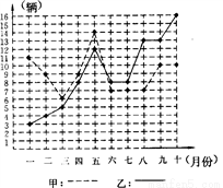 (8分)某市甲、乙两个汽车销售公司,去年一至十月份每月销售同种品牌汽车情况如图所示: