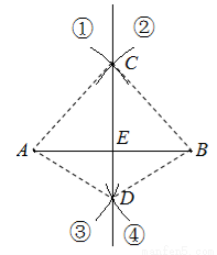 尺规作图画线段AB的中垂线CD(E为垂足)时,为了方便起见,通常把四段弧的半径取成相等;其实不必如此,如图,若能确保弧①、②的半径相等(即AC=BC),再确保弧③、④的半径相等(即AD=BD),直线CD同样是线段AB的中垂线.请你给出证明.