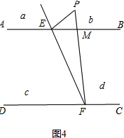 当P点在b区域时,如图4,∠PFC=∠PEB+∠EPF;![]()