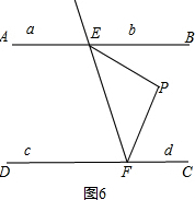 当P点在区域d时,如图6,∠EPF=∠PEB+∠PFC.![]()
