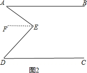 方法二、过E作EF∥AB,如图2,![]()