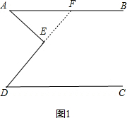 解答 (1)解:①延长DE交AB于F,如图1,![]()
