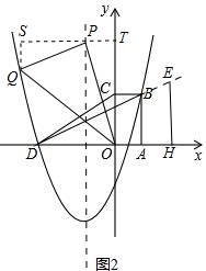 过点PT⊥y轴于T,过点Q作QS⊥PT于S,如图2.![]()