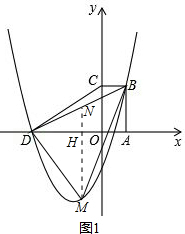 (2)过点M作MN⊥x轴于H,交BD于N,如图1.![]()