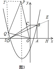 (3)显然∠POQ<90°,当∠OPQ=90°(①△OPQ≌△DHE,②若△QPO≌△DHE)时,过点PT⊥y轴于T,过点Q作QS⊥PT于S,如图2.设OT=n,只需用n的代数式表示出点Q的坐标,然后代入抛物线的解析式,再结合点Q在第二象限,就可解决问题;当∠OQP=90°(③若△PQO≌△DHE,④若△OQP≌△DHE)时,过点Q作QS⊥x轴于S,过点P作PT⊥QS于T,如图3.设PT=n,只需用n的代数式表示出点Q的坐标,然后代入抛物线的解析式,再结合点Q在第二象限,就可解决问题.