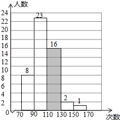 | 次数 | 70≤x<90 | 90≤x<110 | 110≤x<130 | 130≤x<150 | 150≤x<170 |