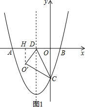 (2)过O′点作O′H⊥x轴于H,如图1,由(1)得D(-2,0),C(0,2$\sqrt{3}$),在Rt△OCD中利用三角函数可计算出∠ODC=60°,再利用折叠的性质得O′D=OD=2,∠O′DC=∠ODC=60°,所以∠O′DH=60°,接着在Rt△O′DH中利用三角函数可计算出O′H=$\sqrt{3}$,利用勾股定理计算出DH=1,则O′(-3,-$\sqrt{3}$),然后根据二次函数图象上点的坐标特征判断O′点是否在抛物线y1上;