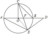 分析 (1)根据等腰直角三角形的性质求出OC、OB,根据勾股定理求出OF,计算即可;