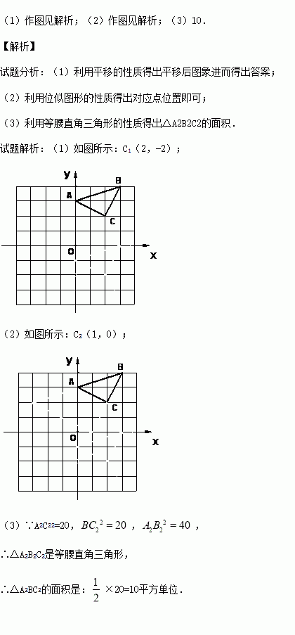 (2)以B为位似中心,在网格中画出ΔA2BC2,使ΔA2BC2与ΔABC位似,且位似比2 :1,直接写出C2点坐标是 .