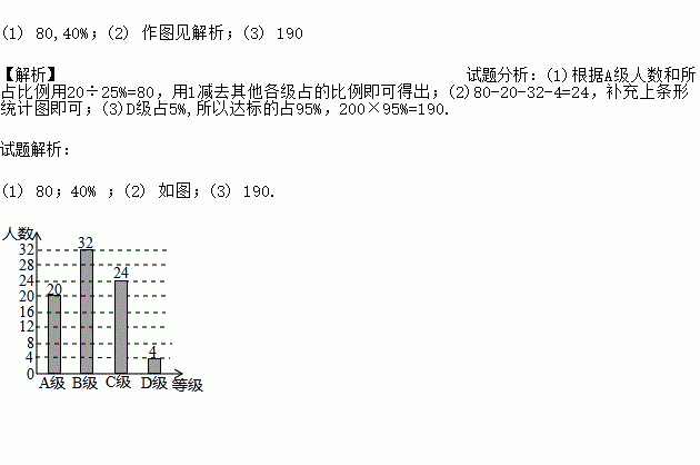 (3) 若该校九年级共有200名同学,请估计该校九年级同学体育测试达标(测试成绩C级以上,含C级)均有___________名.