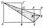 正方形ABCD、正方形BEFG和正方形RKPF的位置如图所示,点G在线段DK上,正方形BEFG的边长为4,则△DEK的面积为 ____________