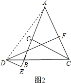 (2)如图2,点D在CB的延长线上,