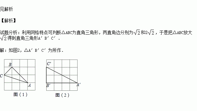 (2015秋•九江期末)下列4×4的正方形网格中,小正方形的边长均为1,三角形的顶点都在格点上,请在图(1)中画出一个格点三角形,使它与图(1)中的△ABC相似.