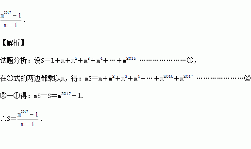 得出答案后,爱动脑筋的张红想:如果把“3”换成字母m(m≠0且m≠1),能否求出1+m+m2+m3+m4+…+m2016的值?如能求出,其正确答案是___________.