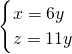 把x=6y代入①得12y-y-z=0,
