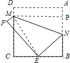 分析 连接ME,作MP⊥AB交AB于点P,根据折叠的性质,在RT△EBN中,若根据勾股定理就可以列出方程,从而解出BN的长.在RT△MFE中,有MF2+FE2=ME2,在RT△MCE中,有CE2+CM2=ME2,根据这两个式子可求得MF=$\frac{1}{2}$,得到DM=AP=$\frac{1}{2}$,NP=2,在RT△MPN中,运用勾股定理求出MN=2$\sqrt{5}$.