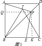 分析 (1)作PQ⊥AB于Q,作PK⊥BC于K,则四边形BQPK是矩形,得出∠QPK=90°,由正方形的性质得出BD平分∠ABC,得出PQ=PK,由HL证明Rt△APQ≌Rt△EPK,得出∠APQ=∠EPK,由角的互余关系证出∠APE=90°,即可得出结论;