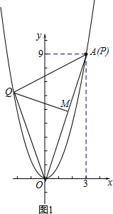 (2)如图1,∵A(3,9),点P与点A重合,点M是OP的中点,