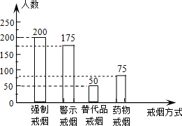 (2)利用百分比的意义求得支持药物戒烟的人数,利用总人数减去其它组的人数即可求得支持警示戒烟的人数;