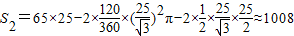 公园B草坪的面积=大矩形的面积-两个扇形的面积-扇形所夹的两个三角形的面积.