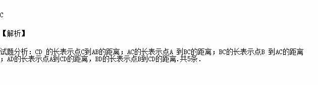 如图所示, CD ⊥ AB ,垂足为 D , AC ⊥ BC ,垂足为 C .图中线段的长能表示点到直线(或线段)距离的线段有( ).
