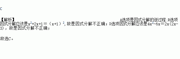A. a(x-y)=ax-ay B. x2+2x+1=x(x+2)+1 C. x2-2x=x(x-2) D. 4x2-6x=x(4x-6)