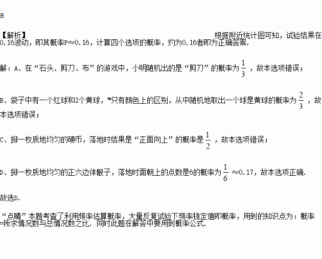 C. 在“石头、剪刀、布”的游戏中,小明随机出的是“剪刀”