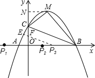 所以存在P1、P2、P3、P4四个点,它们的坐标分别是P1(-1-$\sqrt{5}$,0)、P2($\sqrt{5}$-1,0)、P3($\frac{3}{2}$,0)、P4(1,0).