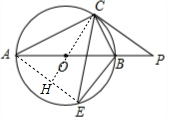 分析 连接OC、AE,OC的反向延长线交AE于E,如图,利用圆周角定理得到∠ACB=∠AEB=90°,则AB=2$\sqrt{5}$,再根据切线的性质得OC⊥PC,接着证明△PCB∽△PAC,利用相似比得到PC=2PB,PC2=PB•PA,则4PB2=PB(PB+2$\sqrt{5}$),解得PB=$\frac{2\sqrt{5}}{3}$,接下来利用等腰三角形的性质得CH⊥AE,则PC∥AE,所以∠P=∠PAE,然后证明Rt△ABE∽Rt△POC,则利用相似比可求出BE的长.
