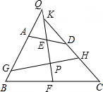 所以PA+PB=PC+PC=PB,此时PA+PB最小,即△ABP的周长最小,
