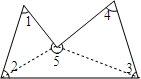 分析:连接∠2和∠5,∠3和∠5的顶点,可得三个三角形,根据三角形的内角和定理即可求出答案.