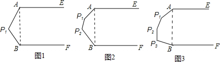 分析 连接AB,如图1、图2、图3,可利用平行线的性质和多边形的内角和定理求出∠EAP1+∠P1+∠P1BF、∠EAP1+∠P1+∠P2+∠P2BF、∠EAP1+∠P1+∠P2+∠P3+∠P3BF的度数,而小王、小李、小徐转过的角度又分别是这些角补角的和,从而可求出他们转过的角度,问题得以解决,