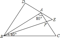 如图,在△ABC中,∠ABC=40°,∠BAC=80°,将△ABC绕点B按逆时针方向旋转一定的角度后得到△DBE,点A恰好落在线段DE上,BE与AC相交于点F.