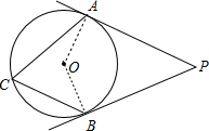 分析 连结OA、OB,如图,先根据切线的性质得∠PAO=∠PBO=90°,再利用四边形的内角和得到可计算出∠AOB=180°-∠P=130°,然后根据圆周角定理即可得到∠ACB=$\frac{1}{2}$∠AOB=65°.