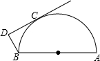 如图所示,已知AB是半圆O的直径,CD切半圆于C,BD⊥CD,若AB=2,∠DBA=140°,求BC的长.