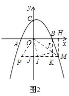 (2)如图2,过点M作MH⊥x轴于点H,MJ⊥y轴于点J;作BK⊥MJ于点K,交OM于点L,作∠MOI=45°,OI交MJ于点I,OI的延长交抛物线于点N(未画出,也不用画出,知道∠MON是45°就行);延长MJ至P,使JP=BL,连接OP.![]()