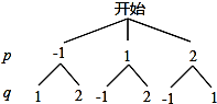 分析 首先根据题意画出树状图,然后由树状图求得所有等可能的结果与满足关于x的方程x2+px+q=0有实数根的情况,继而利用概率公式即可求得答案.