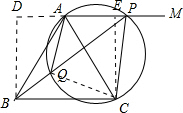 解答 解:过点B作BD⊥直线AP,垂足为D,过点C作CE⊥直线AP,垂足为E,连接QC,如图,![]()