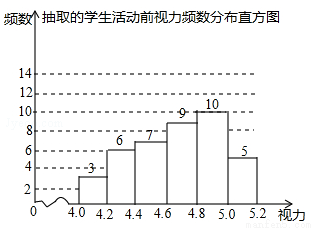 为了保护视力,学校开展了全校性的视力保健活动,活动前,随机抽取部分学生,检查他们的视力,结果如图所示(数据包括左端点不包括右端点,精确到0.1);活动后,再次检查这部分学生的视力,结果如表所示.