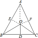 解:连接OA,作OE⊥AB于E,OF⊥AC与F,