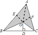 分析:先连接OA,过O作OE⊥AB于E,过O作OF⊥AC于F,由于OB平分∠ABC,OD⊥BC,OE⊥AB,根据角平分线的性质可知OE=OD=3,同理OF=3,据图可知S阴影=S△AOB+S△AOC,根据三角形的面积公式进行计算即可.
