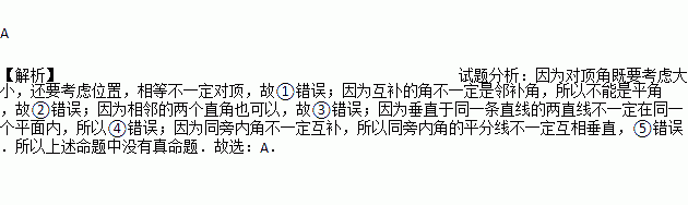 ③互补的两个角一定是一个锐角,另一个为钝角;
