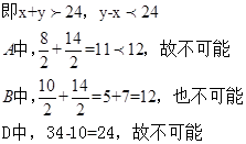平行四边形的对角线长为x、y,一边长为12,则x、y的值可能是( )