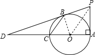 如图所示,AC为⊙O的直径且PA⊥AC,BC是⊙O的一条弦,直线PB交直线AC于点D,
